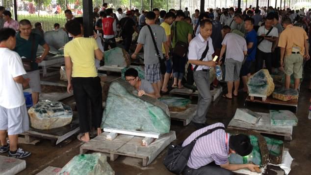 Gian hàng ngọc Jadeit ( Phỉ Thúy) lớn tại thị trường đấu giá mùa xuân 2013 tại Naypyidaw